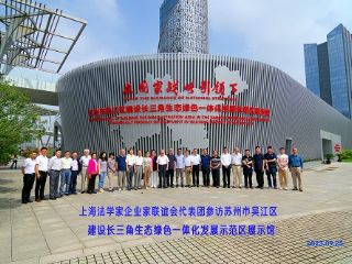 2023年9月25日,上海法学家企业家联谊会一行30人由会长柴俊勇率领,在长三角生态绿色一体化发展示范区执行委员会政策法规部部长、二级巡视员楼戬、副部长禹潇陪同下,来到苏州市吴江区示范区展示馆等处进行实地参观调研,共商跨区域应急管理等合作事宜。