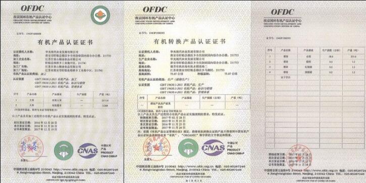 德芳有机农场大田种植于 2015 年秋,己取得国内权威认证机构(国环)颁发的有机认证;并于去年开始陆续取得相关产品国际有机认证。