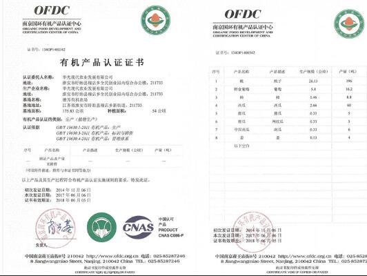 徳芳有机农场果园种植于 2016 年取得国环认证机构颁发有机认证;并计划于 2017 年取得以下产品之国际有机认证: