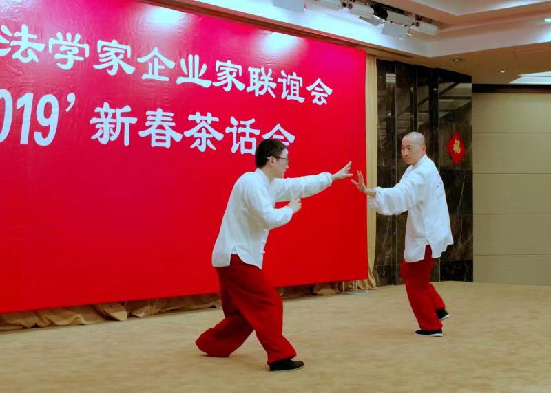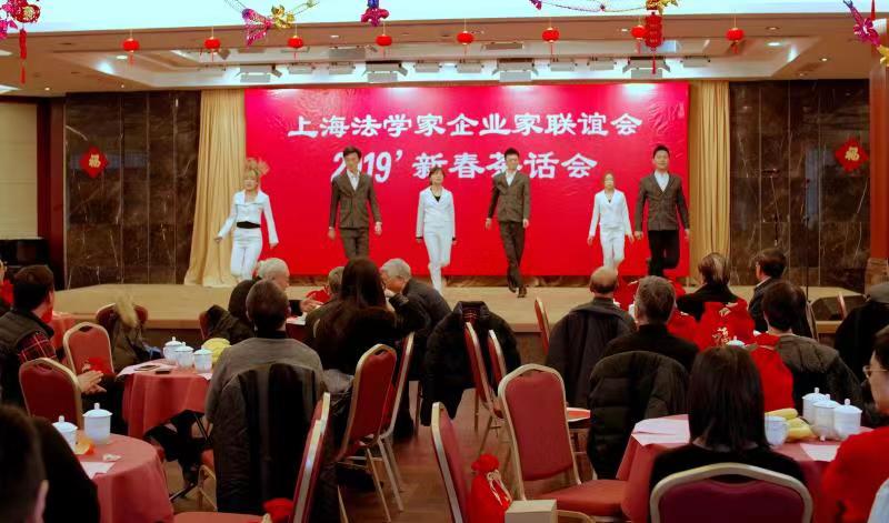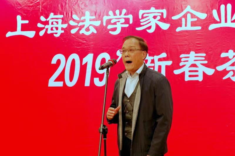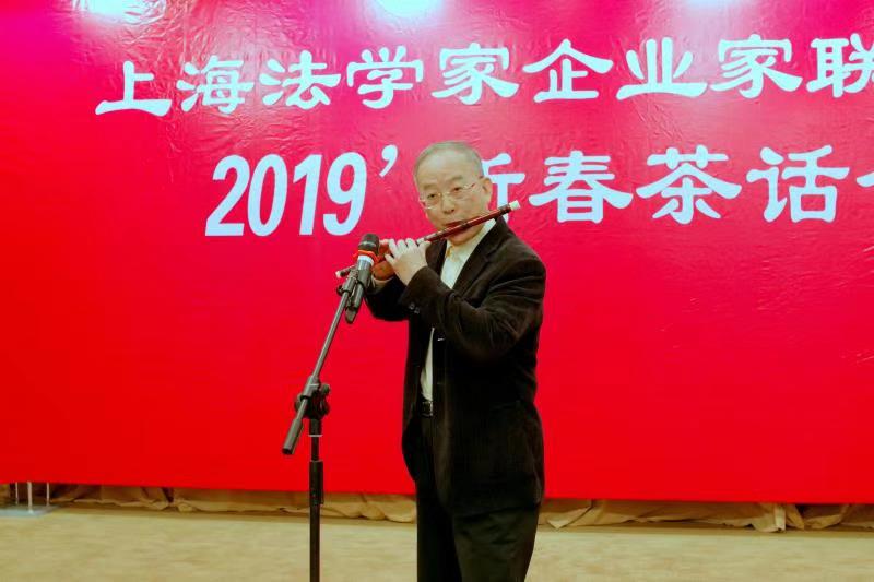 红梅点点风日丽,春意浓浓人杰灵.2月22日下午,上海法学家企业家联谊会在上海市政协“江海厅”红红火火、热热闹闹气氛中隆重举办“2019年新春茶话会”。 百余位会员与应邀出席茶话会的老领导﹑嘉宾、法律专家一起,在上海法学家企业家联谊会会长柴俊勇致辞后,与会的老领导、法学家和企业家们先后登台自拉自唱,展示了个人的艺术才华和企业形象,表达了广大会员团结奋进的信心和决心。在主持人蒋澄澜,朱泽玲热情洋溢的开场白之后,柴俊勇会长首先致辞,代表联谊会向全体嘉宾和会员表示亲切的慰问,感谢大家与联谊会一起同舟共济,同铸辉煌,同创未来。新春茶话会以“家”为主题,凸显了新时代﹑新征程﹑新作为的主旋律。副会长单位上海强生控股股份有限公司选送的一曲男声独唱《想家的时候》拉开了联欢会序幕。李黛娴的女声独唱《好运来》,吴璐璐的女声独唱《美丽的心情》,副会长单位上海久事公交集团选送的“踢踏舞”,上海飞麟文化有限公司选送的《八卦乾坤》等节目立意新颖,匠心独具.副会长巢文建的京剧唱段,书法家常纪仁展示的书法才艺等带我们走入中华优秀文化传统.新春茶话会充满着简朴文明、热情洋溢、自娱自乐、共话未来的正能量。异彩汾呈,形式多样的表演不仅营造了浓郁的喜庆氛围,而且增强了联谊会奋发的精神面貌.曾任联谊会名誉会长﹑联谊会第五届理事会会长,中共上海市委原常委﹑上海市政协原副主席朱达人同志闻讯后,专程从华东医院病房请假前来新春茶话会现场,为联谊会会员们献上一曲京剧清唱唱段,表达了老领导对联谊会的支持和关心,也在一定程度上提升了士气,凝聚了共识。
