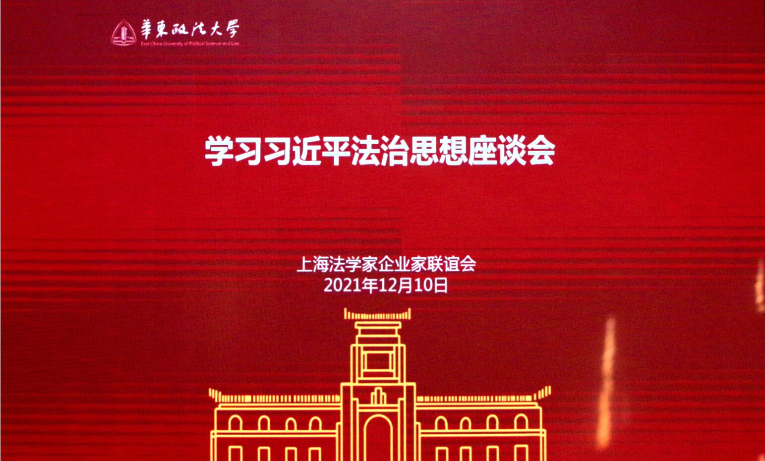 上海法学家企业家联谊会12月10日假座华东政法大学(长宁校区)举行法律咨询专家委员会学习习近平法治思想座谈会,座谈会由联谊会会长兼法律咨询专家委员会主任柴俊勇主持,华东政法大学校长叶青教授应邀出席并讲话,华东政法大学胡玉鸿教授作辅导报告。