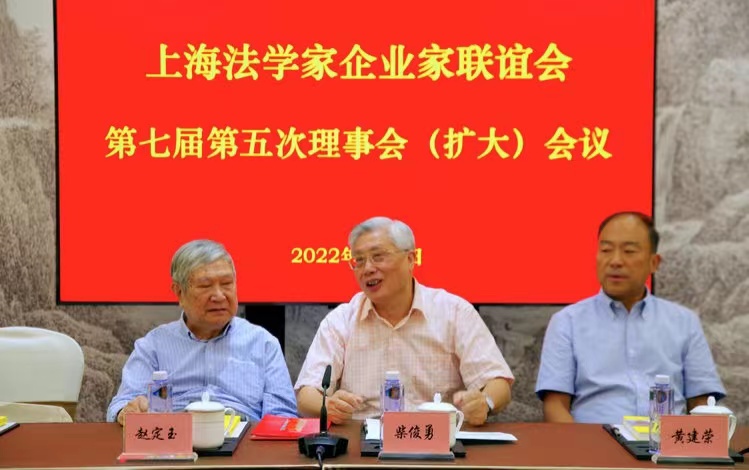 2022年9月8日,上海法学家企业家联谊会在副会长单位上海海成资源(集团)有限公司,召开了第七届第五次理事会(扩大)会议,中共上海市委统战部原部长、上海市政协原副主席、上海法学家企业家联谊会原名誉主席赵定玉和主管机关中共上海市委统战部非公经济处副处长归建华应邀出席会议并讲话,联谊会部分理事、监事、会员等40余人出席。
