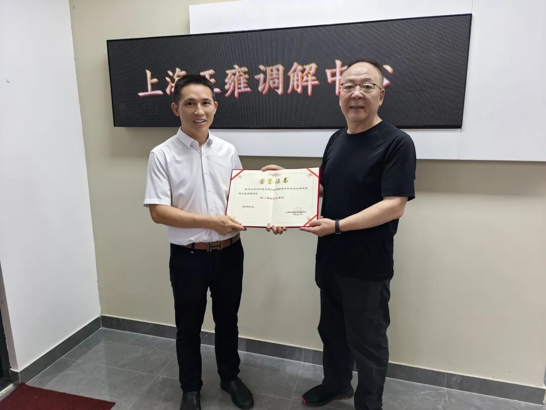 调研组一行先后为尚城实业集团和正雍调解中心举行了授牌仪式。米振荣副会长兼秘书长分别将联谊会副会长单位证书授予尚城实业集团副总经理彭修永先生和正雍调解中心主任杨巍先生。