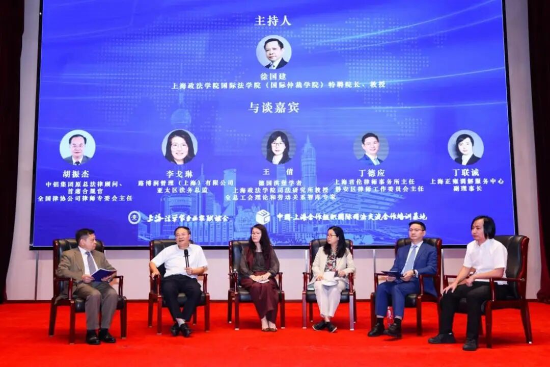 议题一由上海政法学院国际法学院(国际仲裁学院)特聘院长、教授徐国建主持。中铝集团原总法律顾问、首席合规官,全国律协公司律师专委会主任胡振杰,路博润管理(上海)有限公司亚太区法务总监李戈琳,德国洪堡学者、上海政法学院司法研究所教授、全总工会理论和劳动关系智库专家王倩,上海君伦律师事务所主任、静安区律师工作委员会主任丁德应,上海正雍调解服务中心副理事长丁联诚从不同角度探讨了企业出海风险问题的防范与解决。企业出海是非常专业化的问题,企业不仅是“走出去”,更是“走进去”,应充分了解当地的法律及风俗习惯,争做“本地企业”。