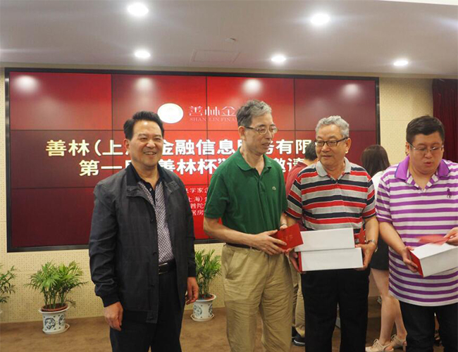 第一届“善林杯”桥牌邀请赛由上海法学家企业家联谊会柴俊勇会长主持。金燕萍,罗昌平以及上海金融业联合会主要领导等参加。邀请赛采用循环赛制,经过9轮激烈角逐,决出了名次。上海市政协原副主席钱景林,柴俊勇等领导分别向获奖选手颁发了奖杯。