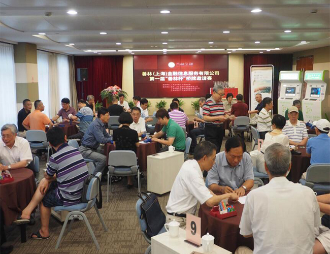 在八一建军节即将到来之际,7月22日下午,由上海法学家企业家联谊会主办,善林(上海)金融信息服务有限公司,上海普陀区城市投资有限公司以及上海安居房产开发有限公司承办的第一届“善林杯”桥牌邀请赛在普陀城投总部隆重举行。本市部分金融界和企业界以及有关人士应邀,共有50多名代表参与比赛。