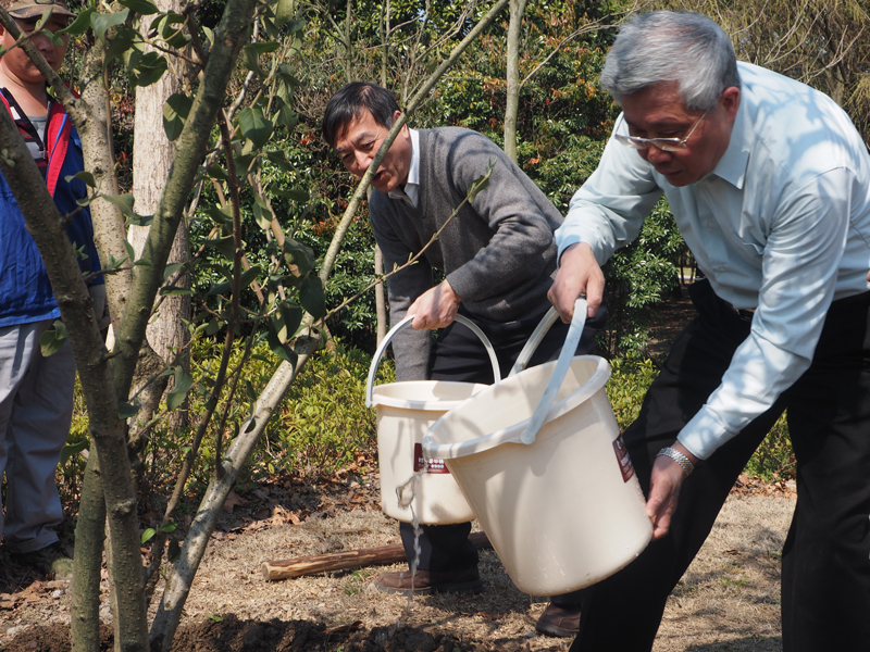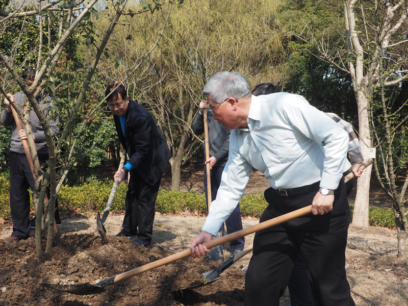 春回大地,万象更新,花红柳绿,满地芳草。3月12日植树节,上海法学家企业家联谊会组织 “树立生态理念,共建绿色社团”植树护绿主题活动。在柴俊勇会长的带领下,联谊会的副会长,秘书长和企业家代表以及法律咨询委员会部分专家等一行20人来到上海共青国家森林公园。大家干劲十足,有的挖坑、有的扶树、有的培土、有的浇水,齐心合力种下五棵树。园方专家告诉大家,今天种下的树叫“木绣球”,它的花很“团结”。因为它们一直都是生长在一起成一团,它们有一个形象的名字“绣球花”。它们在百花丛里很突出,在《花语大全》里,它有许多传说和寓意。